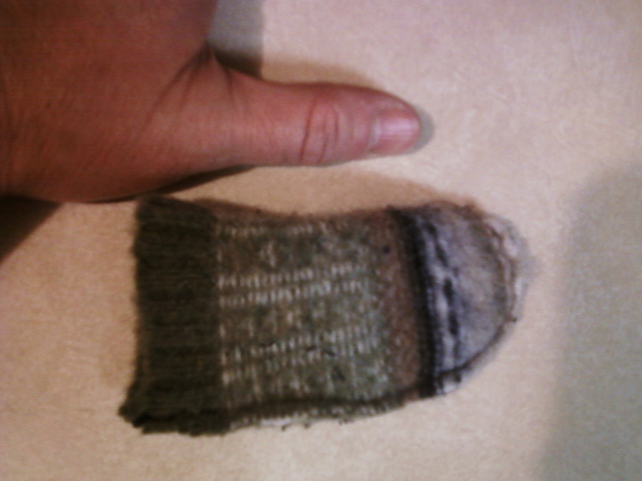 You must also understand that I had only my camera phone while I was working on this project.  I realize that my demonstration illustrations are a bit low tech, but I think they help.  I have medium sized hands, and here were the measurements of my cuts: